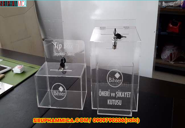 Từ những tấm mica, chúng tôi với sự khéo tay của người thợ thiết kế đảm bảo sự phù hợp nhất đối với quý khách hàng. Thùng đựng tiền tips được gia công, cắt CNC, máy laser công nghệ cao đáp ứng sự phù hợp nhất đối với quý khách hàng.