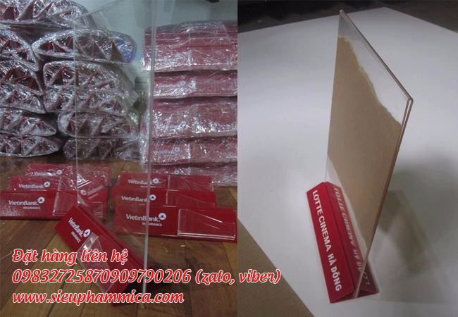 WWW.SIEUPHAMMICA.COM đã tạo ra sản phẩm kệ menu từ chất liệu mica, sản phẩm tạo ra có độ trong suốt như kính giúp khách hàng có thể dễ dàng quan sát tờ menu bên trong từ 2 phía nhưng lại có độ bền cao, không bị vỡ, hỏng như kính, đặc biệt bạn còn có thể kết hợp in lưới hoặc dán đề can thông tin công ty, nội dung nhằm pr cho hình ảnh công ty, siêu thị, doanh nghiệp của mình.
