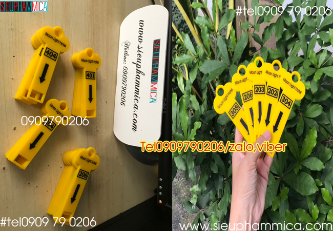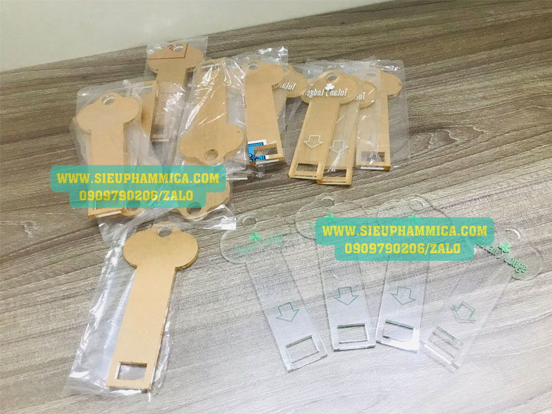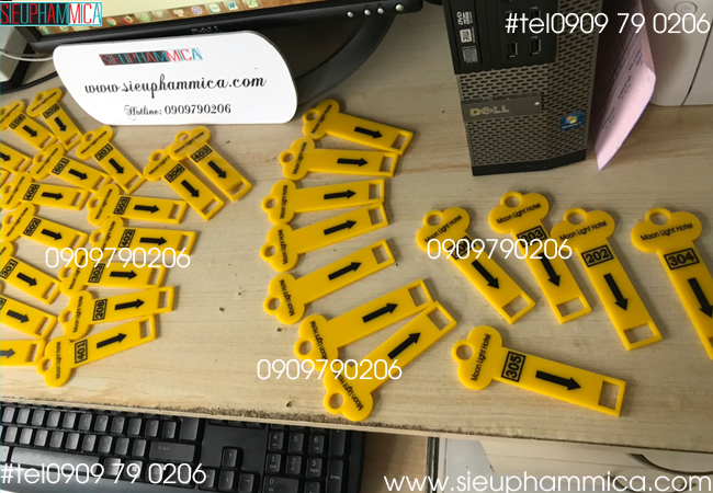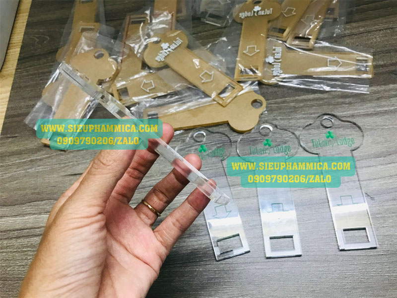 Chìa Khóa Điện Khách Sạn, móc khóa khách sạn, nhà nghỉ : Chìa khóa điện khách sạn làm bằng mica 4mm cứng cáp, dùng mở khóa điện trong các phòng khách sạn, nhà nghỉ, công ty, phòng trưng bày... Móc chìa khóa điện khách sạn bằng Mica do WWW.SIEUPHAMMICA.COM sản xuất: Móc Khóa được sản xuất bằng các công nghệ tiên tiến như : cắt laser, ép nhiệt cao tần, in UV . Bằng phương pháp cắt Laser linh hoạt có thể cắt theo mọi hình dáng, kiểu cách cũng như kích thước khác nhau. Giá thành rẻ chỉ bất cứ nhà nghỉ, hay khách sạn nào cũng có thể đặt hàng. Gọn nhẹ, dễ dàng đóng gói, vận chuyển.