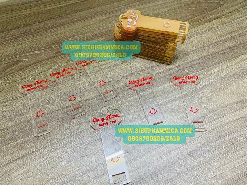 Nhưng chiếc móc khóa mica có thể in được logo, tên của cơ sở kinh doanh, thông tin địa chỉ và hotline. Bạn cũng có thể in số thứ tự cho phòng khách sạn hoặc tủ đồ. Đây là phương thức tiện lợi và không bị nhầm lẫn hay thất lạc đi chìa khóa của mình khi trao đến tay khách hàng của bạn.