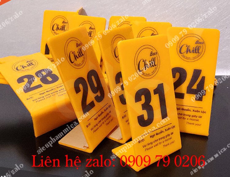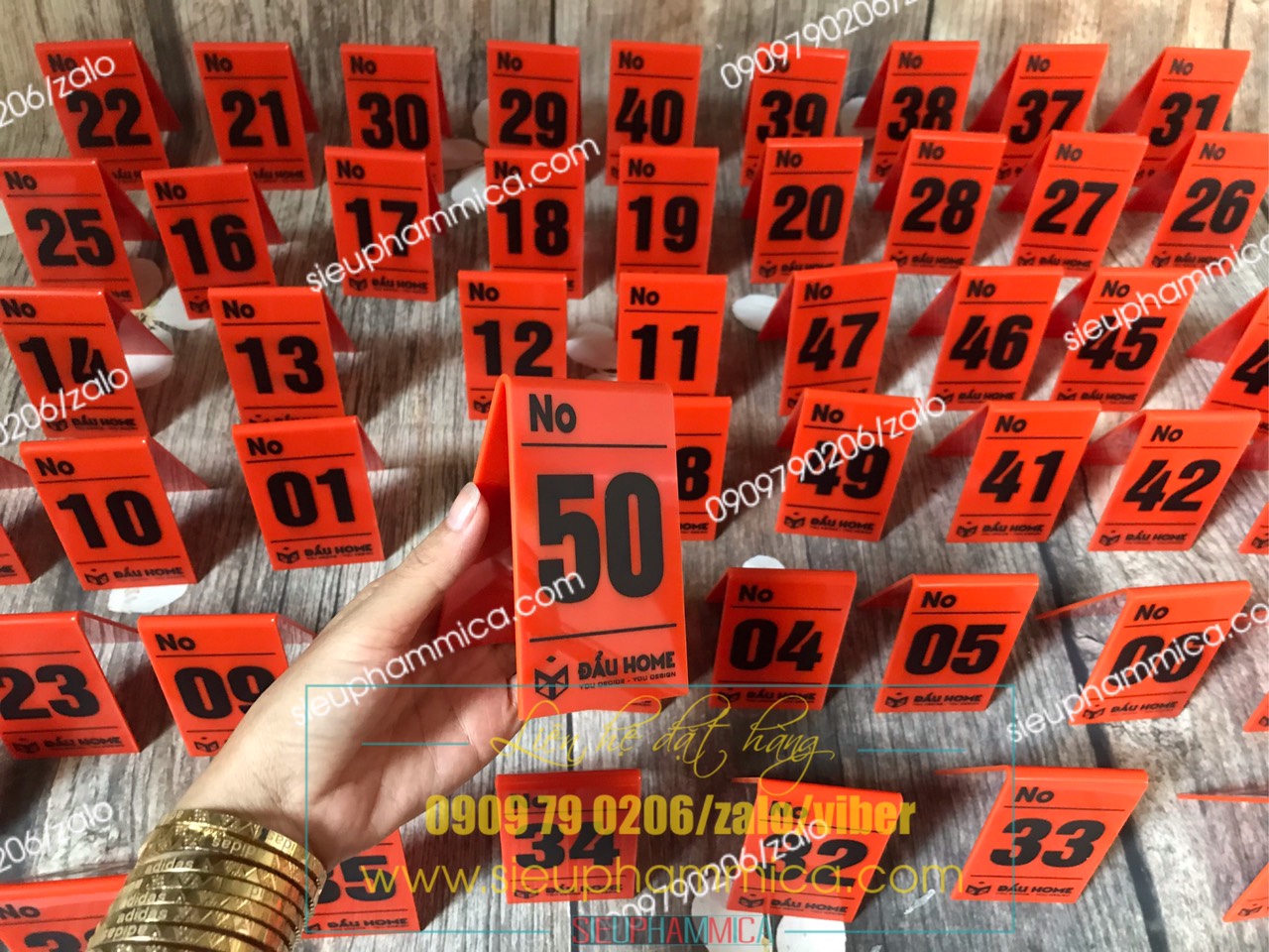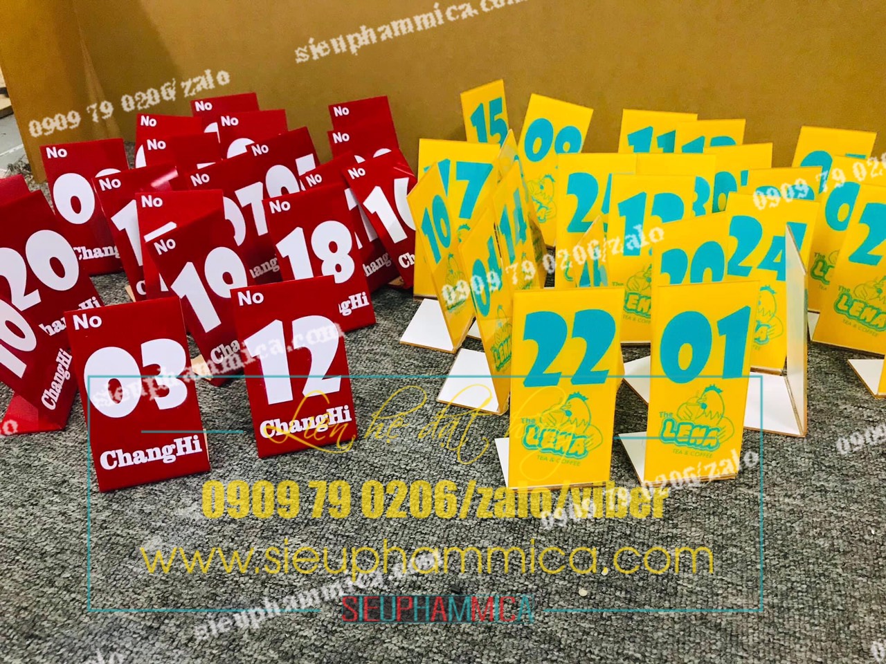 Thẻ số bàn Mica, thẻ số bàn giá rẻ tphcm, làm thẻ số bàn theo yêu cầu