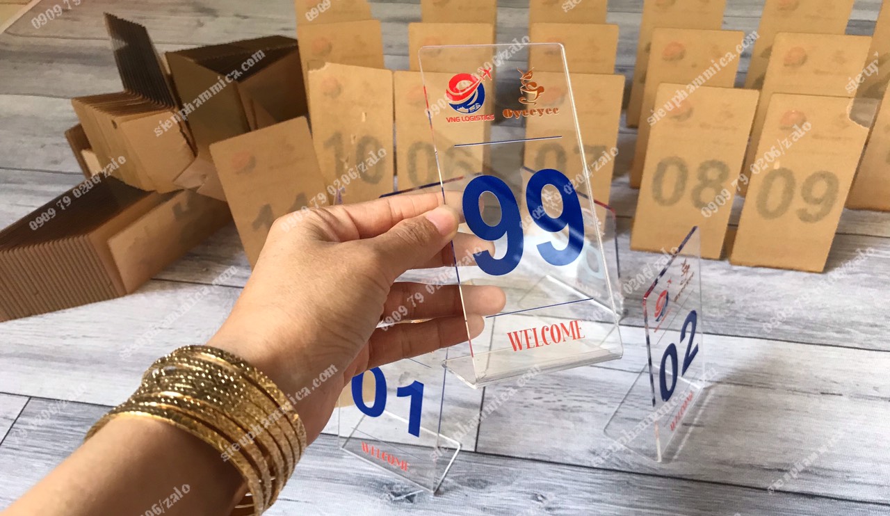 Biển số bàn mica, thẻ số bàn, số chờ mica, kệ số mica để bàn là những vật dụng mà hẳn các bạn thường bắt gặp ở một số nơi như nhà hàng, quán café… Và chắc chắn rằng một số lần nào đó bạn cũng rất tò mò cầm nó lên và ngắm nghía phải không? Không chỉ dùng để trang trí mà những biển số mica để bàn, kệ số bàn mica còn là những vật dụng tạo sự thiện cảm cho khách hàng khi đến một quán café hay một nhà hàng. Đây là thành công rất lớn của ngành quảng cáo, mà đặc biệt là những công ty chuyên sản xuất, thiết kế các sản phẩm từ mica.