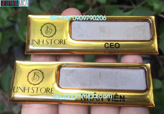 và thể chọn loại bảng tên cài ghim hoặc biển tên cài nam châm thay đổi dùng lại được nhiều lần tiết kiệm chi phí.