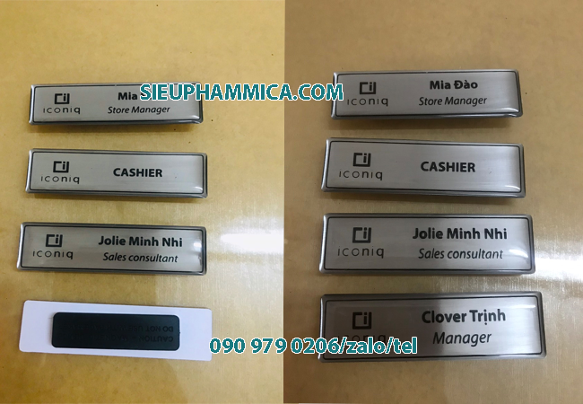 và thể chọn loại bảng tên cài ghim hoặc biển tên cài nam châm thay đổi dùng lại được nhiều lần tiết kiệm chi phí.