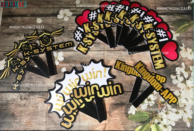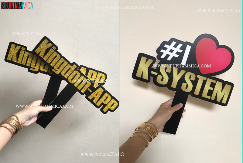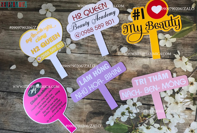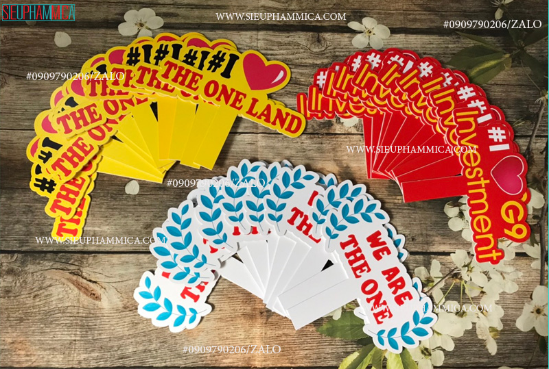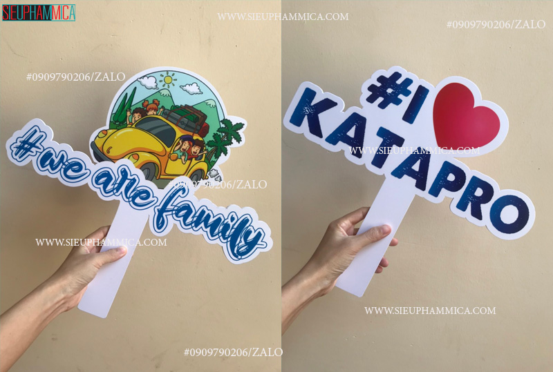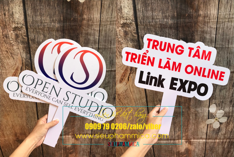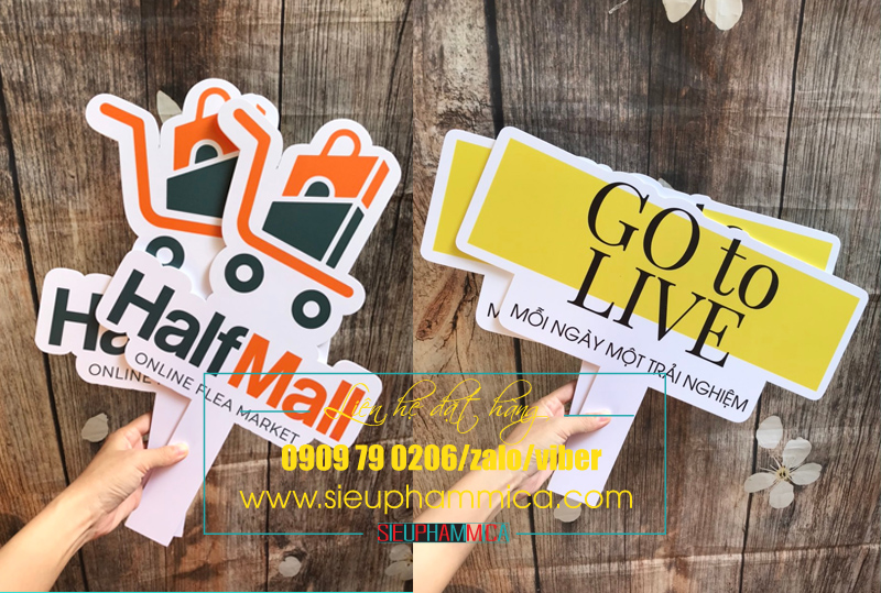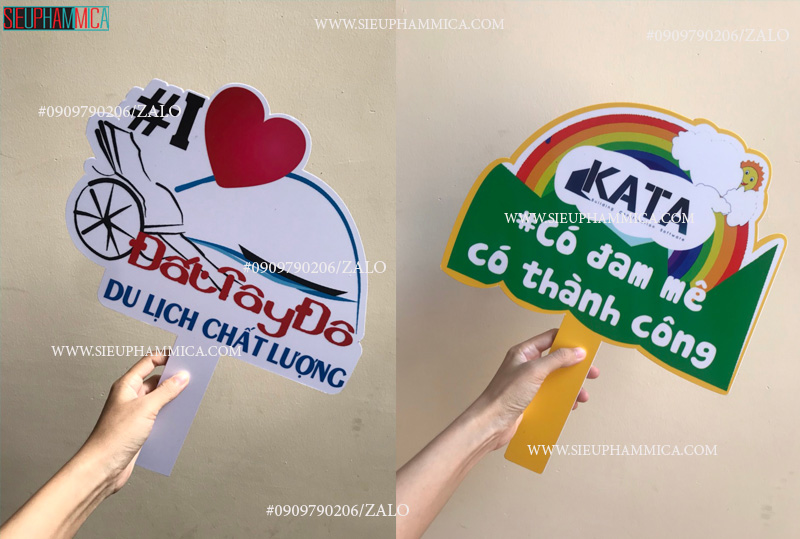 Được sử dụng nhiều nhất trong hầu hết các chương trình và sự kiện, hashtag cầm tay luôn được ưa chuộng nhất trên thị trường. Cấu tạo của nó gồm có 2 phần chúng là phần thân và phần đế. PP là chất liệu chính dùng để làm nên hashtag vì tính nhẹ bền và dễ tạo hình bằng máy hoặc cắt bằng tay. Phần thân được in các nội dung hashtag với nhiều nội dung khác nhau tùy thuộc vào nhà tổ chức. Do đó mẫu mã của chúng rất đa dạng và luôn được sử dụng trong các chiến lược marketing của các công ty