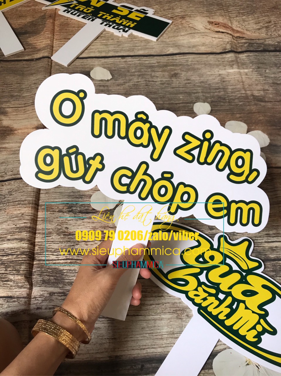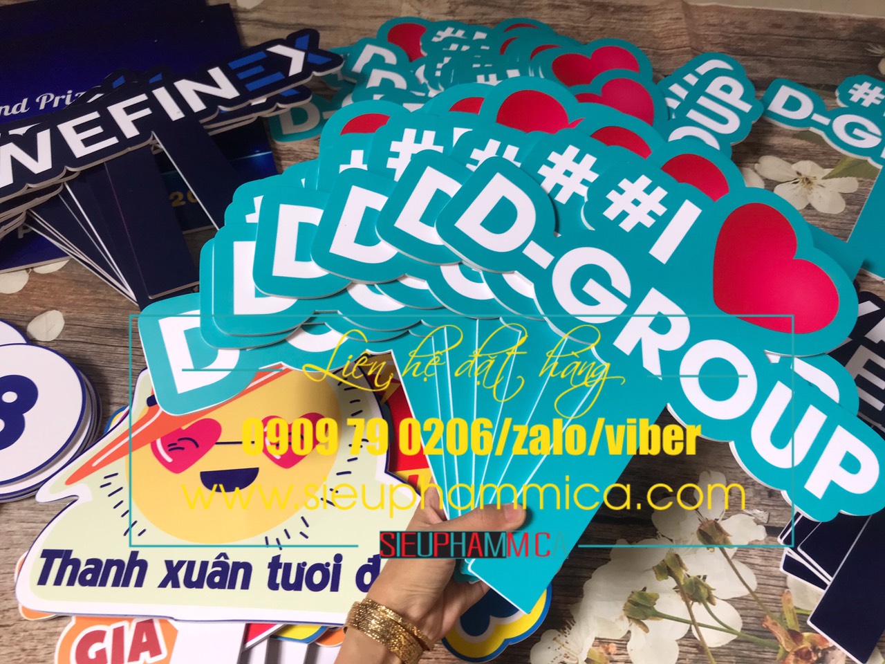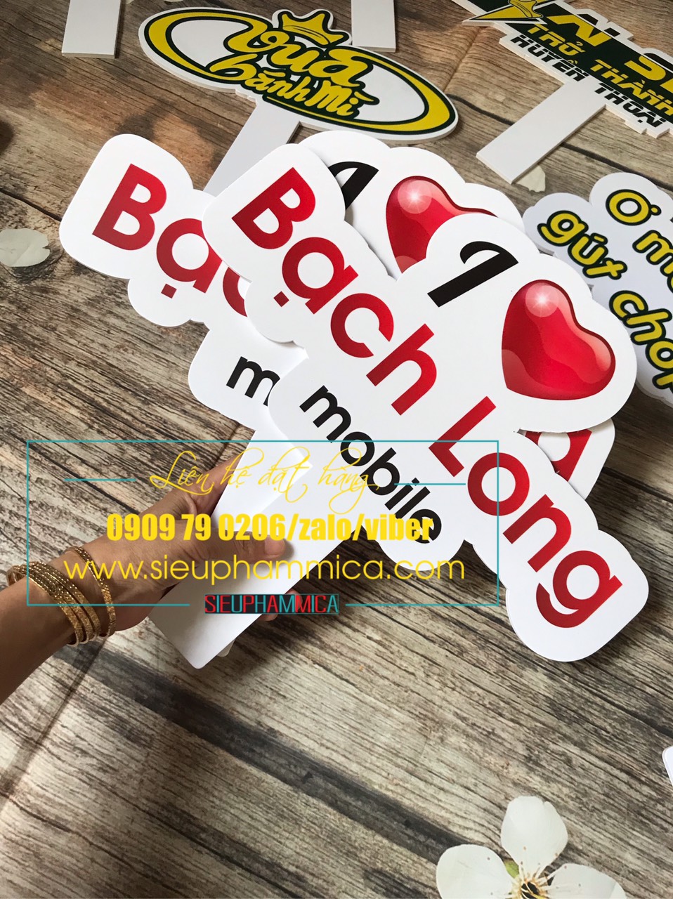 Bảng quảng cáo cầm tay chụp ảnh được làm từ chất liệu fomex 3mm, 5mm hay mica