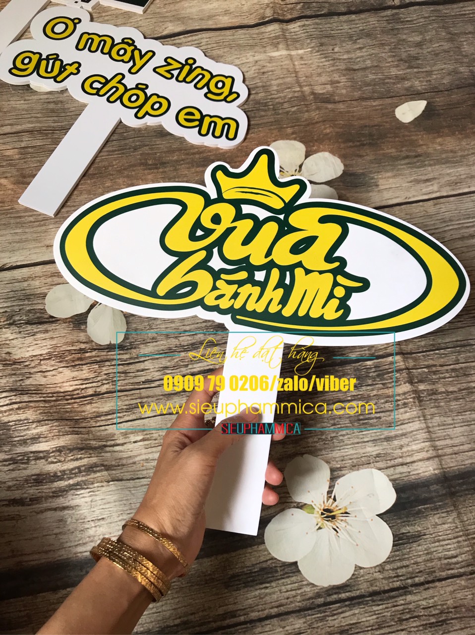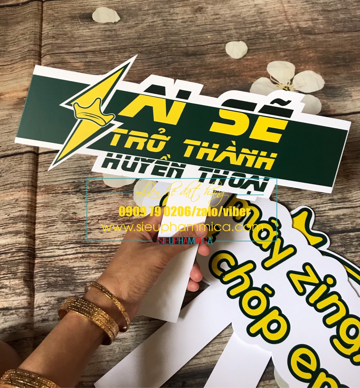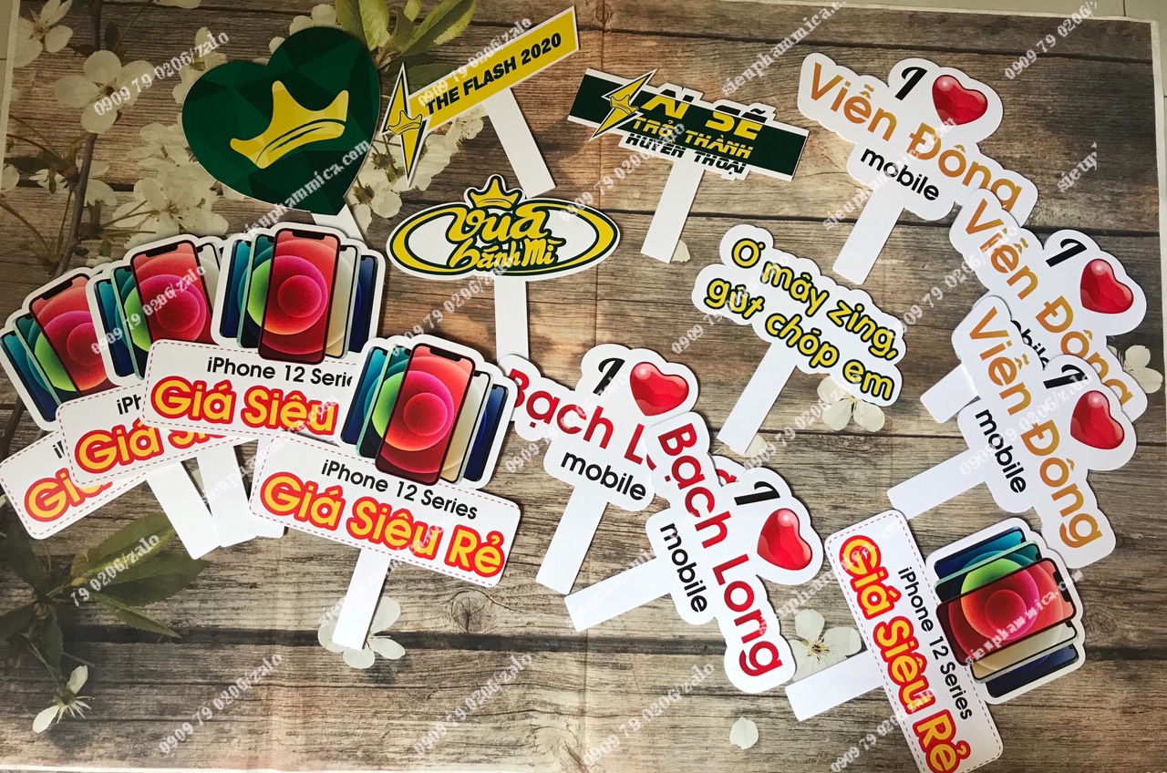 Bảng quảng cáo cầm tay chụp ảnh được làm từ chất liệu fomex 3mm, 5mm hay mica
