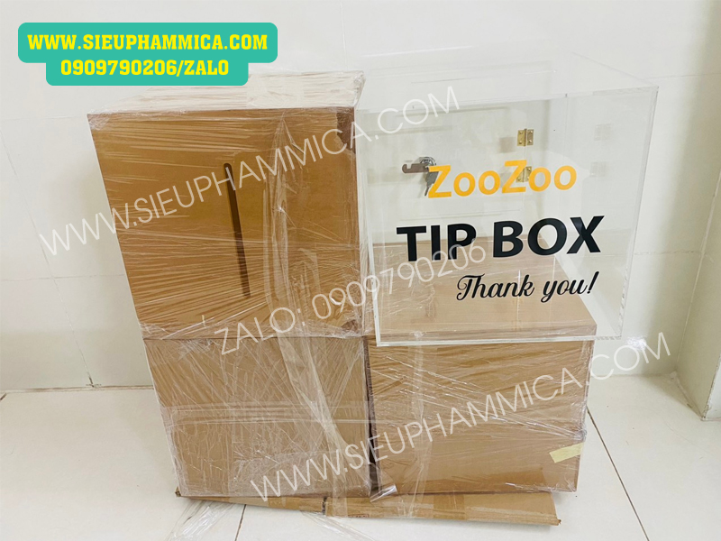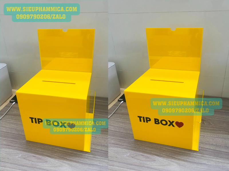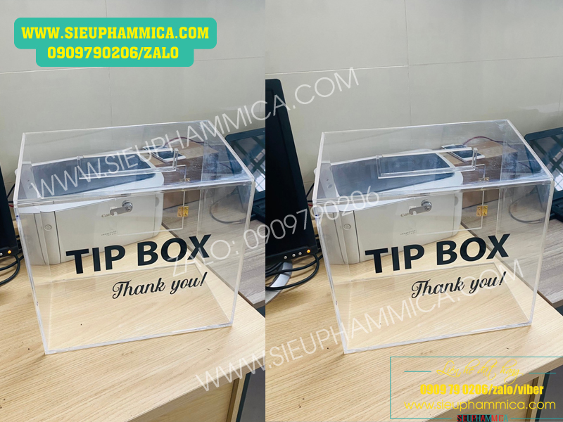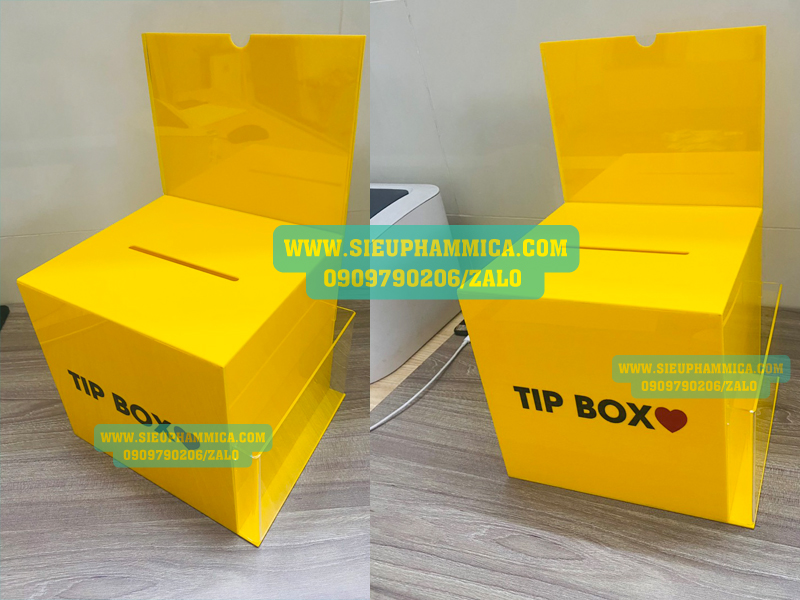 Hộp tipbox mica hay còn gọi là hộp tip tiền lẻ (hộp mica) có thể làm theo mọi yêu cầu mẫu mã