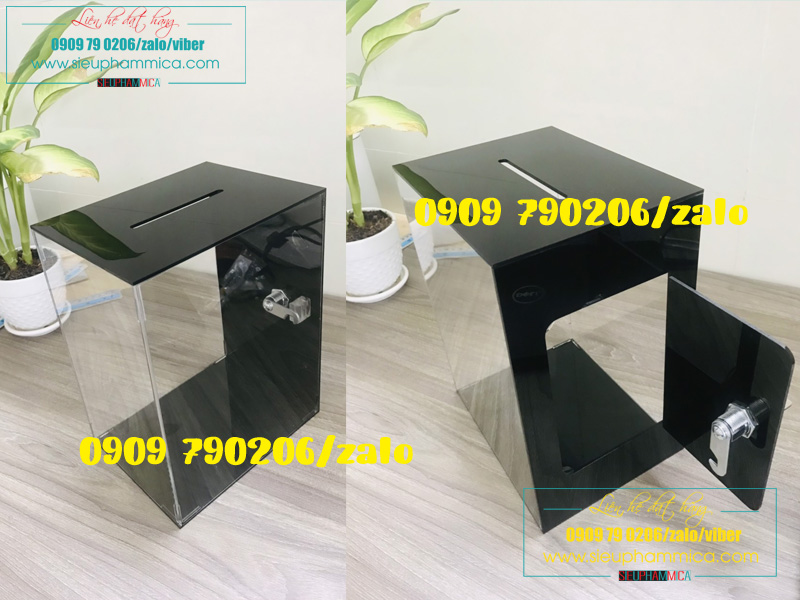 Hòm phiếu mica, thùng phiếu bốc thăm là sản phẩm được làm từ mica Đài Loan, được chế tác thành dạng hộp có đế dùng để bỏ phiếu thông tin, bầu cử, thăm may mắn,… vào bên trong.