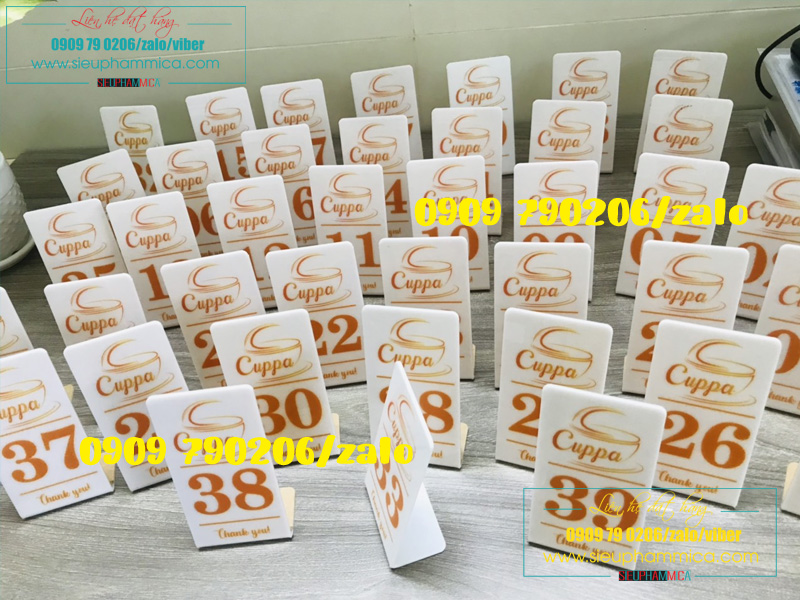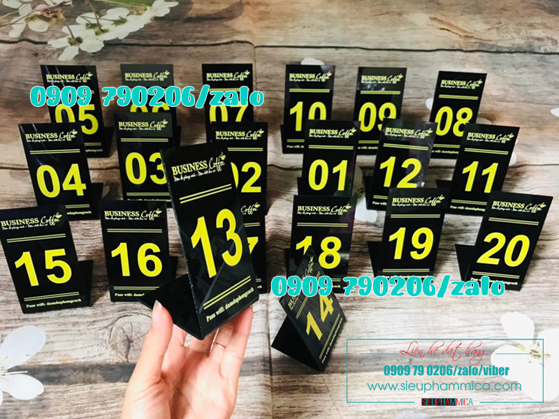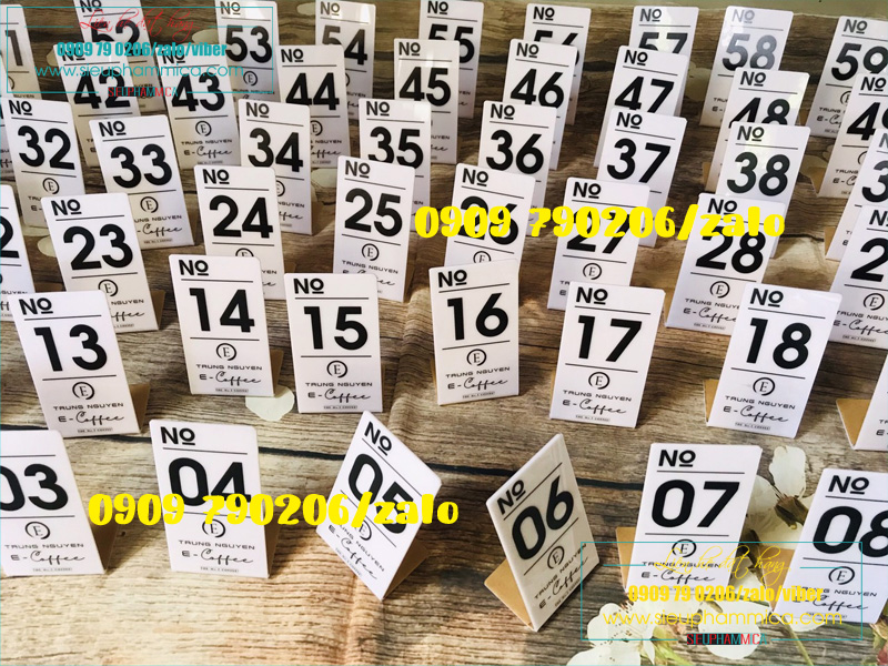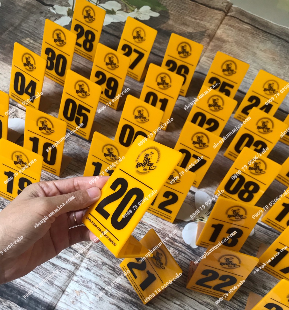 Biển số mica để bàn, số bàn chờ đợi, thẻ số nhà hàng, thẻ số bàn ăn, thẻ số quán nước, Thẻ số bàn Mica, thẻ số bàn giá rẻ tphcm, làm thẻ số bàn theo yêu cầu, số bàn quán cafe, số bàn quán trà