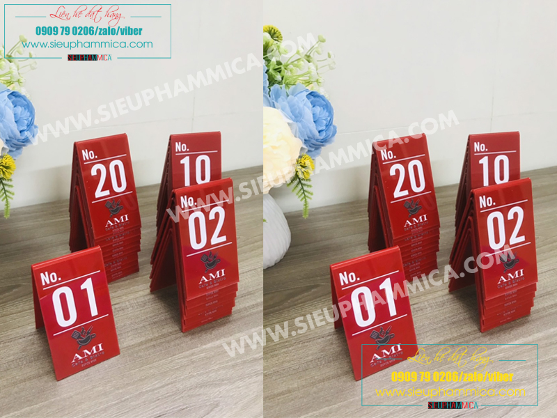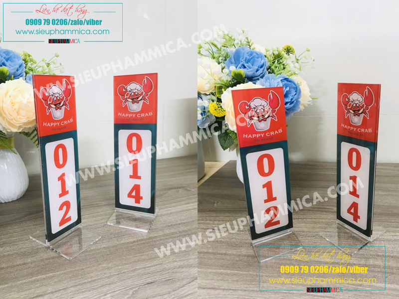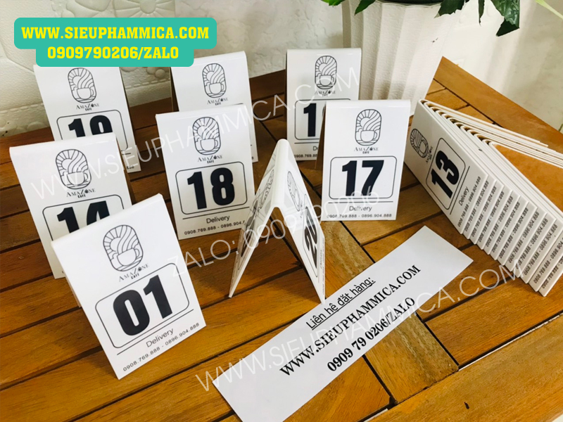 Biển số bàn mica, thẻ số bàn, số chờ mica, kệ số mica để bàn là những vật dụng mà hẳn các bạn thường bắt gặp ở một số nơi như nhà hàng, quán café… Và chắc chắn rằng một số lần nào đó bạn cũng rất tò mò cầm nó lên và ngắm nghía phải không? Không chỉ dùng để trang trí mà những biển số mica để bàn, kệ số bàn mica còn là những vật dụng tạo sự thiện cảm cho khách hàng khi đến một quán café hay một nhà hàng. Đây là thành công rất lớn của ngành quảng cáo, mà đặc biệt là những công ty chuyên sản xuất, thiết kế các sản phẩm từ mica.