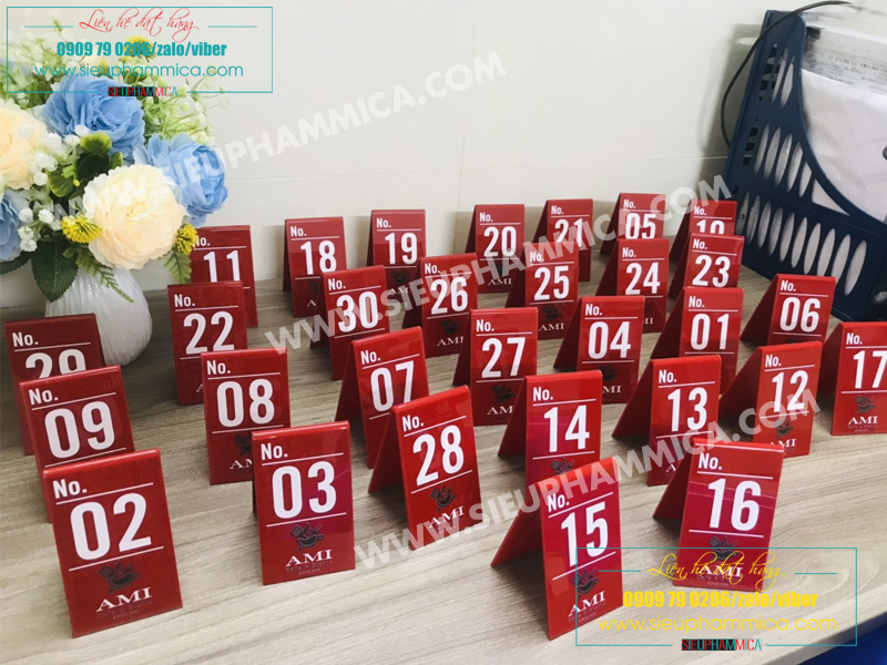 Làm thẻ số bàn bằng mica, thể số bàn inox theo yêu cầu