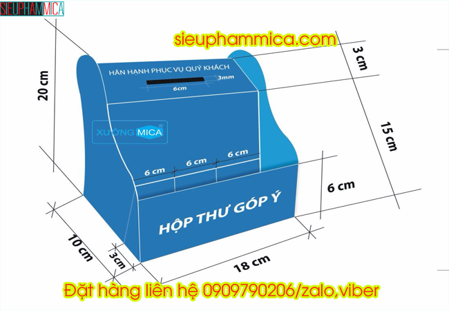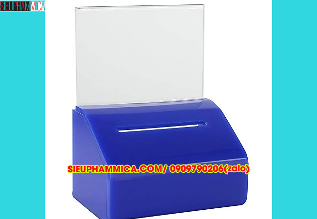 - Hòm thư góp ý mica xanh tím được làm từ mica Đài loan 2mm, 3mm, 5mm,...