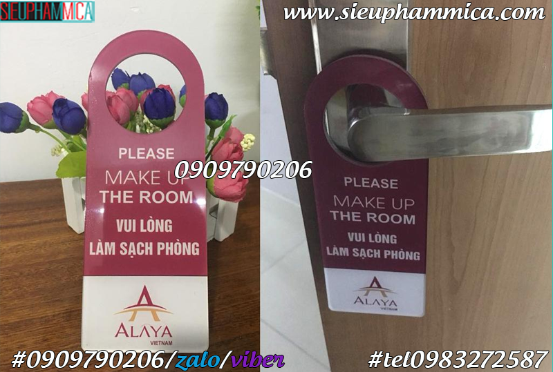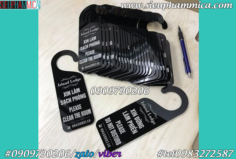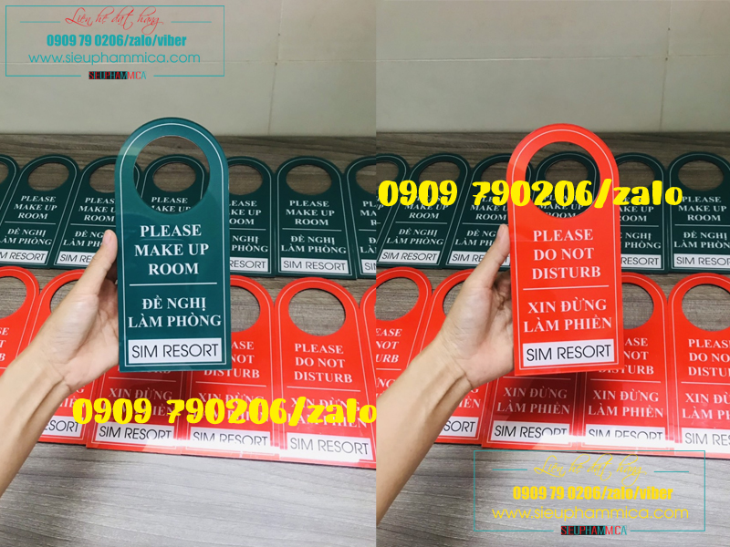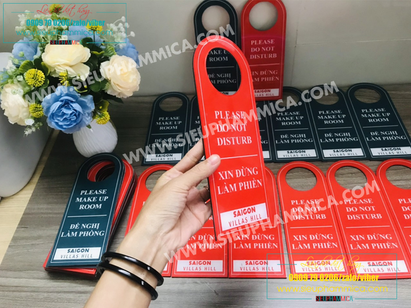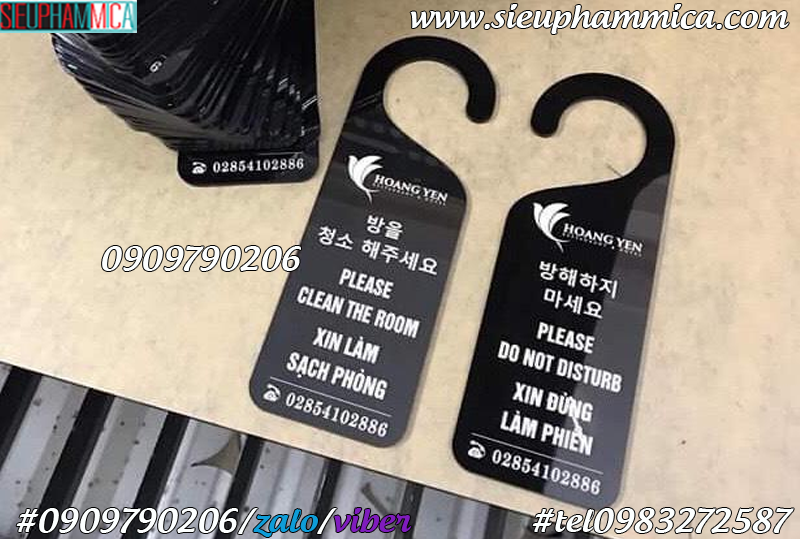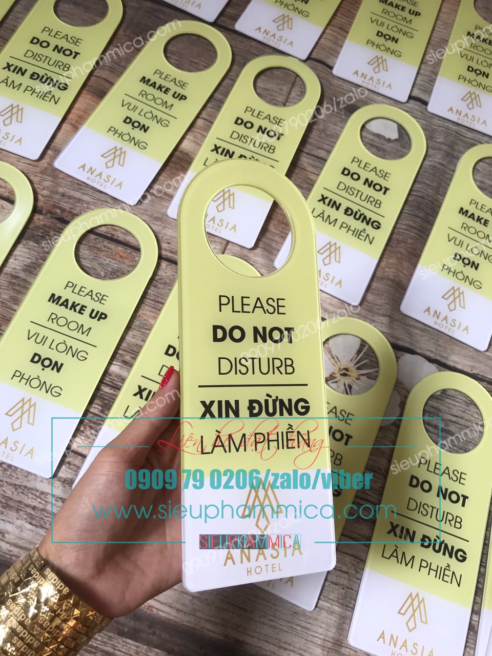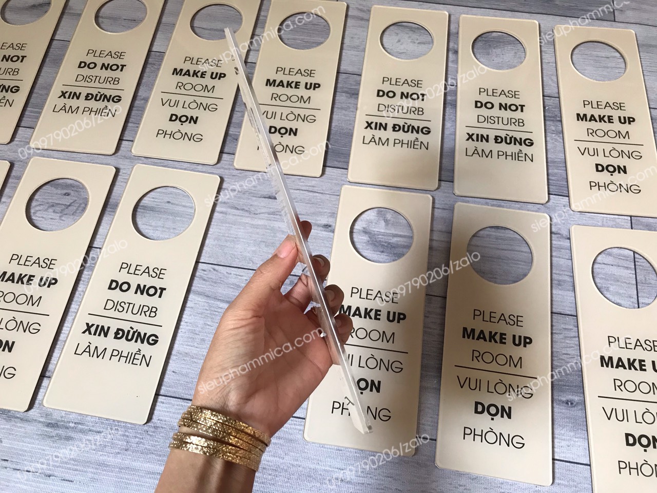 Biển không làm phiền khách sạn, biển do not disturb mica, biển mica in decal, biển không làm phiền, biển yêu cầu dọn phòng, thẻ số phòng thay đồ, thẻ phòng thay quần áo, biển cấm làm phiền, biên please clean my room