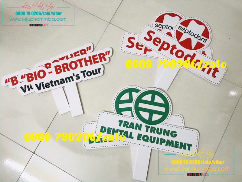 Được sử dụng nhiều nhất trong hầu hết các chương trình và sự kiện, hashtag cầm tay luôn được ưa chuộng nhất trên thị trường. Cấu tạo của nó gồm có 2 phần chúng là phần thân và phần đế. PP là chất liệu chính dùng để làm nên hashtag vì tính nhẹ bền và dễ tạo hình bằng máy hoặc cắt bằng tay. Phần thân được in các nội dung hashtag với nhiều nội dung khác nhau tùy thuộc vào nhà tổ chức. Do đó mẫu mã của chúng rất đa dạng và luôn được sử dụng trong các chiến lược marketing của các công ty