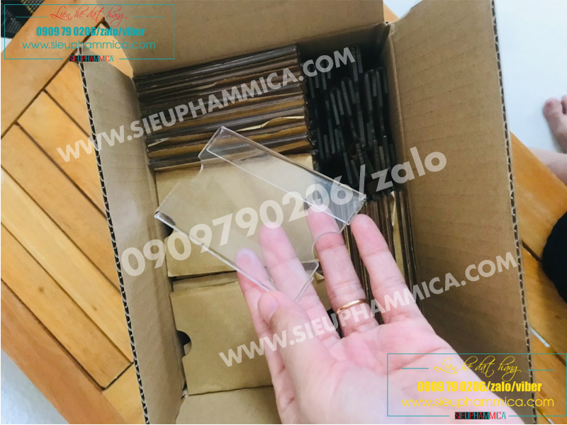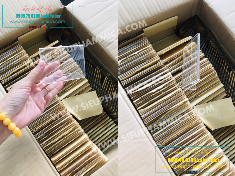 Thẻ mica giá tiền sản phẩm được làm từ mica Đài trong suốt.