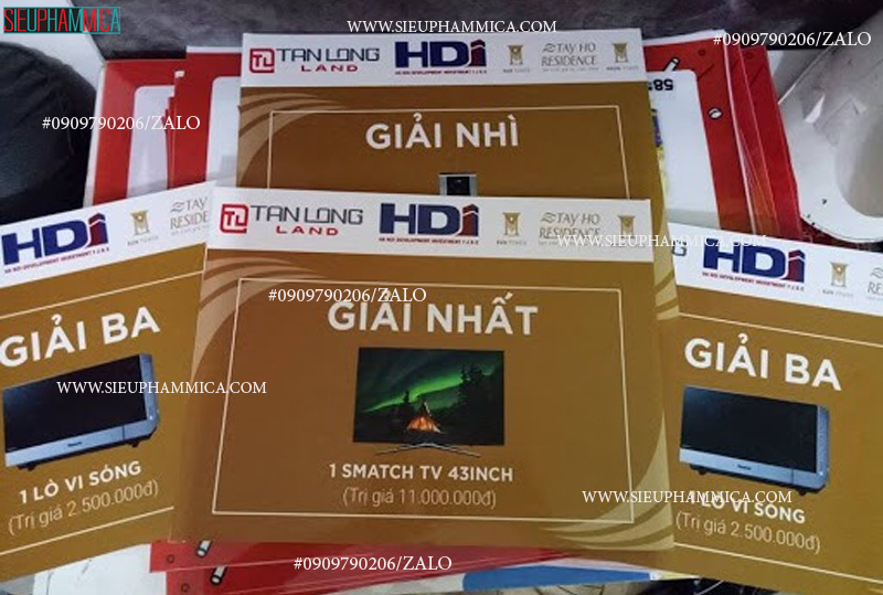 Bên cạnh việc in bảng trao giải thưởng, chúng tôi còn in ấn và thiết kế hashtag chụp ảnh, khung checkin Facebook, gia công kệ Mica, hộp Mica,...