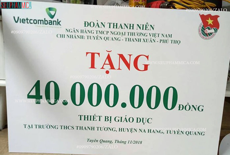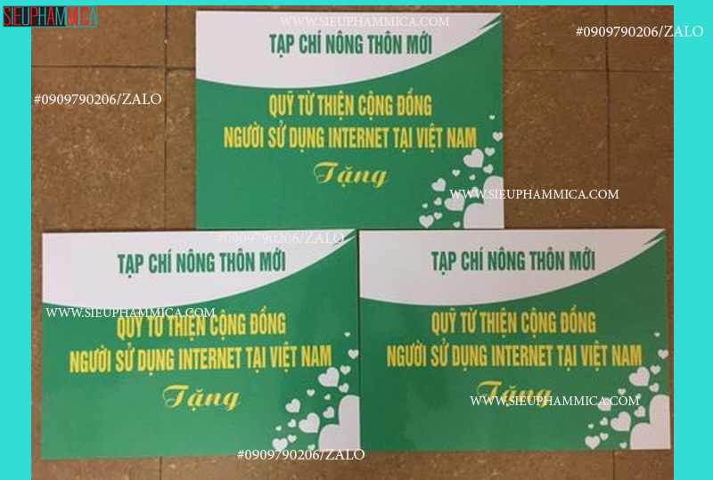 Bên cạnh đó, bảng trao giải thưởng Mica tạo nên sự sang trọng, chất in rất đẹp và sắc nét tuy nhiên giá thành lại đắc, sự bền chắc của Mica thích hợp việc sử dụng lâu dài, và sự kiện lớn quan trọng,....