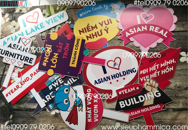 Bảng hashtag chụp hình cầm tay được làm từ fomat 3li, 5li, hoặc bằng mica giá thành sẽ khác nhau theo từng số lượng, kích thước và chất liệu.